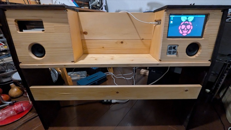 また、ただ付けただけにしては意外と良い音のステレオスピーカーからは、NASに保存されているLMBの膨大な音楽コレクションが再生されることでしょう。