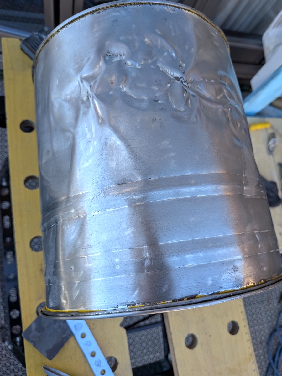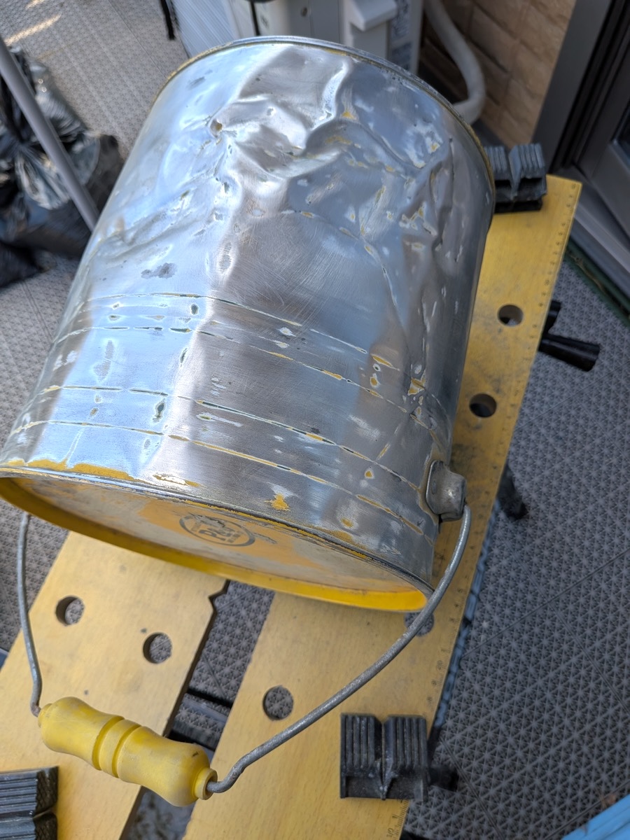 とにかく、叩いたら元のバケツっぽい形状になってきたので、ここからボロボロ感をなくしていく作業をするのです。