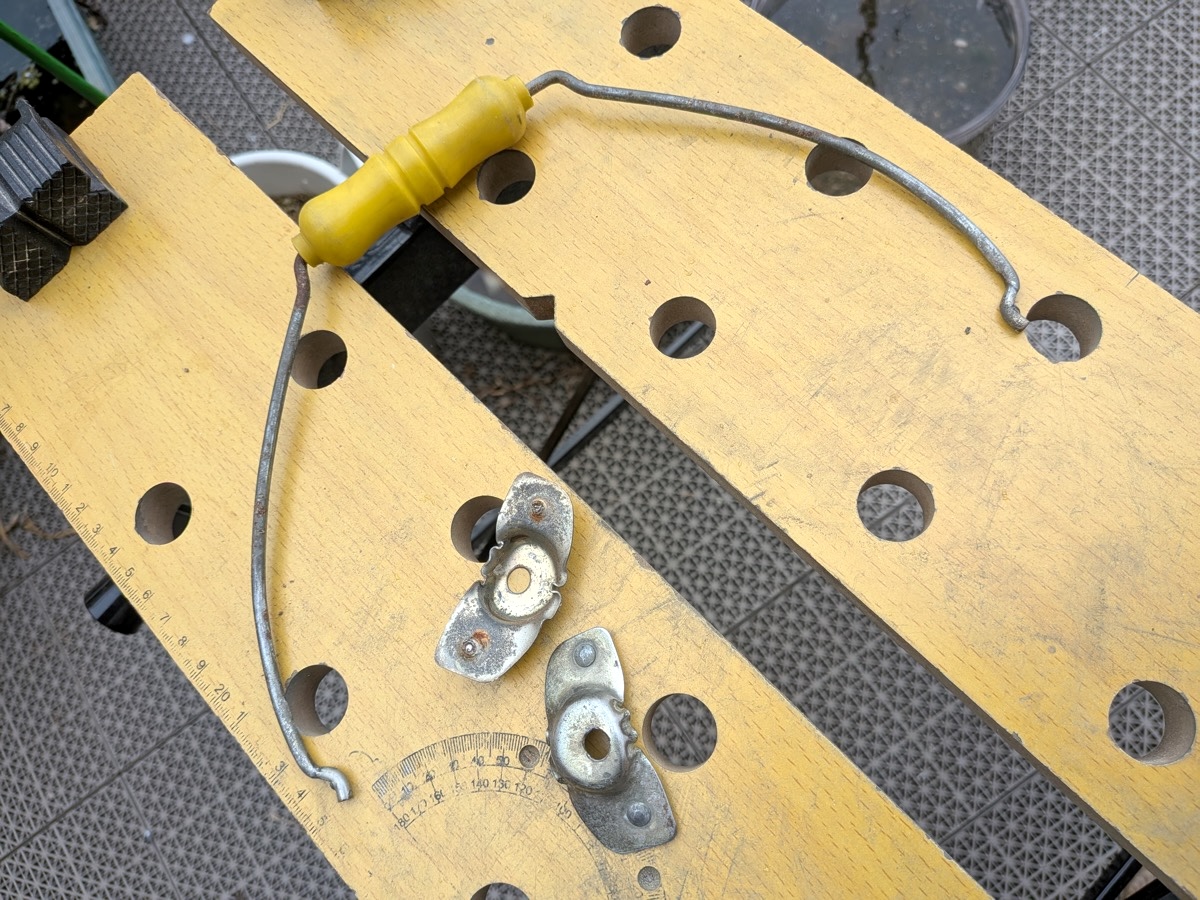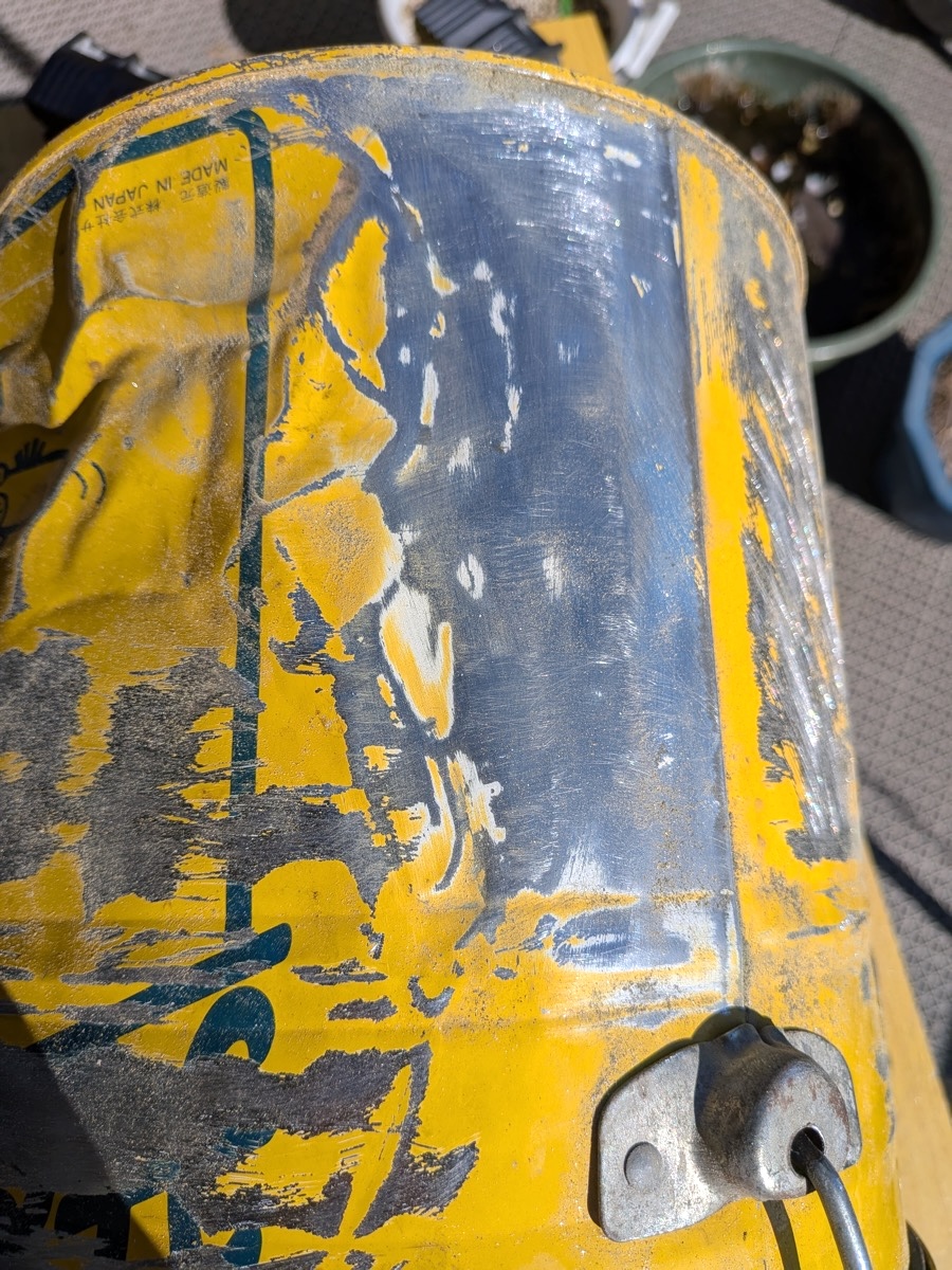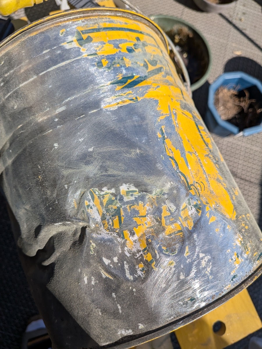バケツが綺麗な円形ではなくなっていて、取っ手が上手く動かせないということで、これは外すことに。