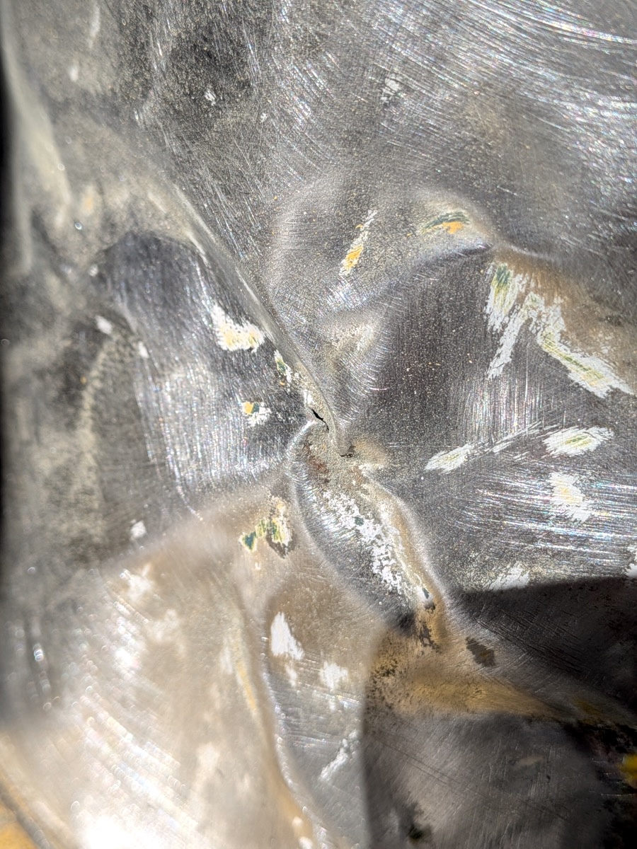 上の写真は結構修復作業が進んだところのものなので、元のもっとボロボロな状態の写真がないのが残念ですが、最初はもっと凹みが激しくて、捨てるしかないような状態でした。
