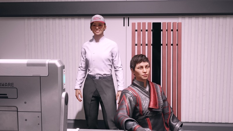 そういえば、同行しているクルーが写ってるスクショが全然なかったけど、リュウジンのミッションの途中からアキラ・シティで雇ったロージーと一緒に行動してるの。