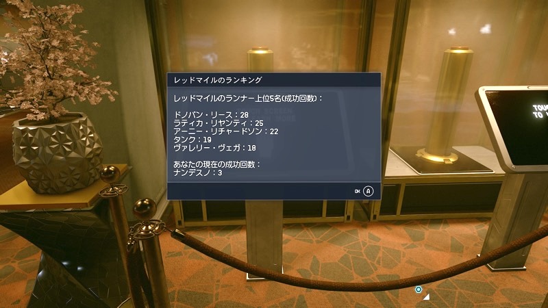 ペントハウスも手に入れたし、ここからは再びリュウジンのミッションと見せかけて、なぜかレッドマイル・ランに挑戦してしまうナンデスノさん。