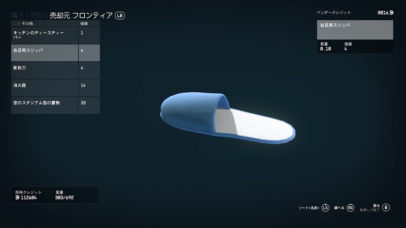 そういえば、宇宙船の改造をすると船内に散らかってるものなんかが倉庫に送られて、空き容量が減るってことを知ったから余計なものを売ろうとしたんだけど。