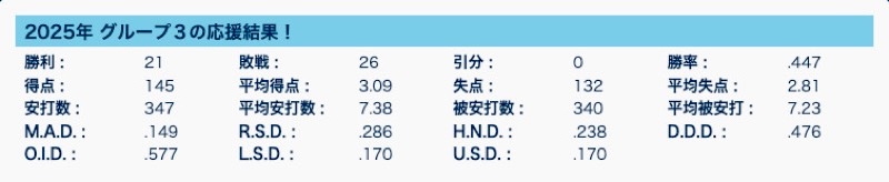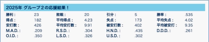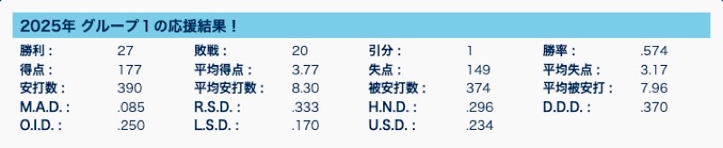 23勝20敗5分、勝率.535のグループ2。メンバーはザク団員、レッシィ団員、コルタナ団員です!