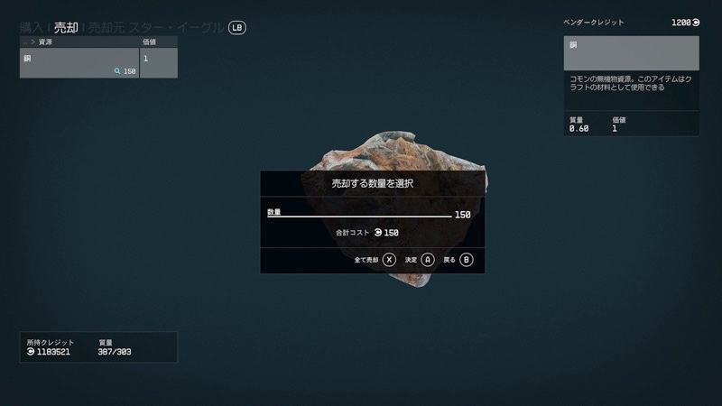 ミッションで銅を渡した時には数千クレジットだったのに。