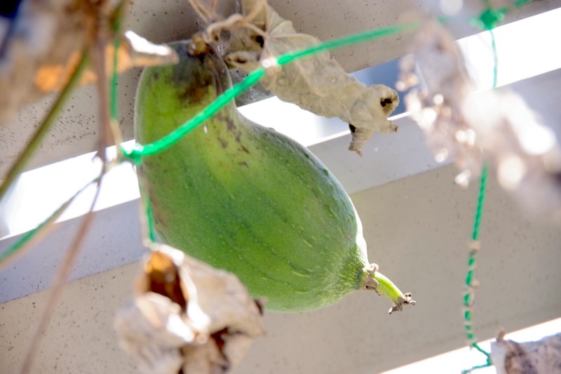 そして、花も葉っぱもほぼ枯れたけど、最後の実だけが青々しているヘチマも!