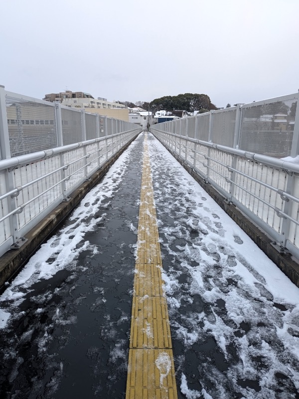 それはどうでもイイのですが、道路には雪が積もってなかったですけど、歩道橋は結構ピンチでした。