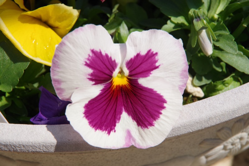 この白と紫は今回のパンジーの中では変わり種!