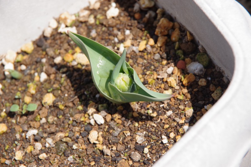球根が去年より小さくなっていたテブリちゃんことチューリップはやっぱり小さい花が咲きそうだよ!