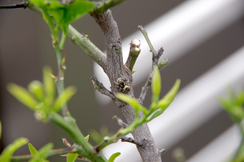 次はグレープフルーツの木でクモ探しクイズ!