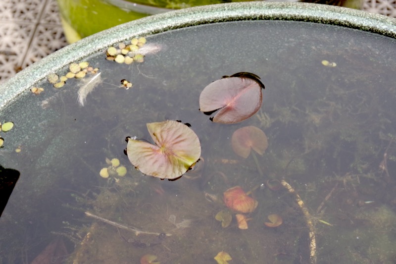 ブラックホール沼は掃除した甲斐があって睡蓮の葉っぱが育ってきたよ!