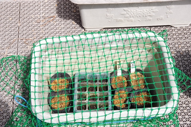 まだ大量のスズメちゃんが来ているし、種を食べられないように簡易のスズメちゃん対策!