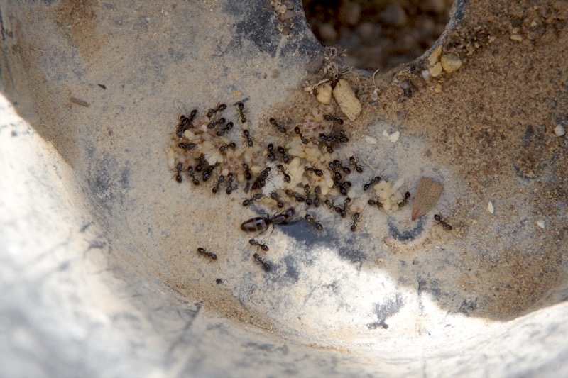なんと重ねてあった苗ポットのすき間でアリが巣作りをしていたよ!