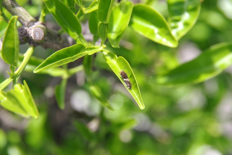 モサモサしてきたグレープフルーツには早くもマダムの子がやって来ている!