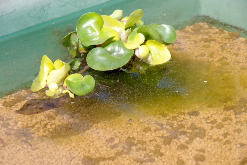 これはまだホテイアオイしかない状態だけど、日当たりが良すぎるせいか、早くも根にアオミドロがついてたりするよ!